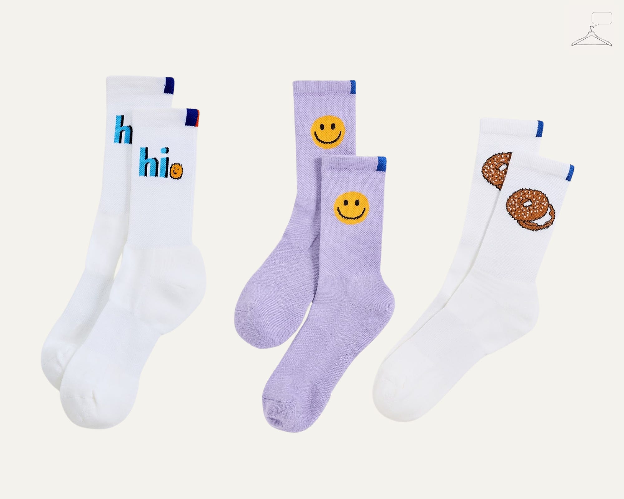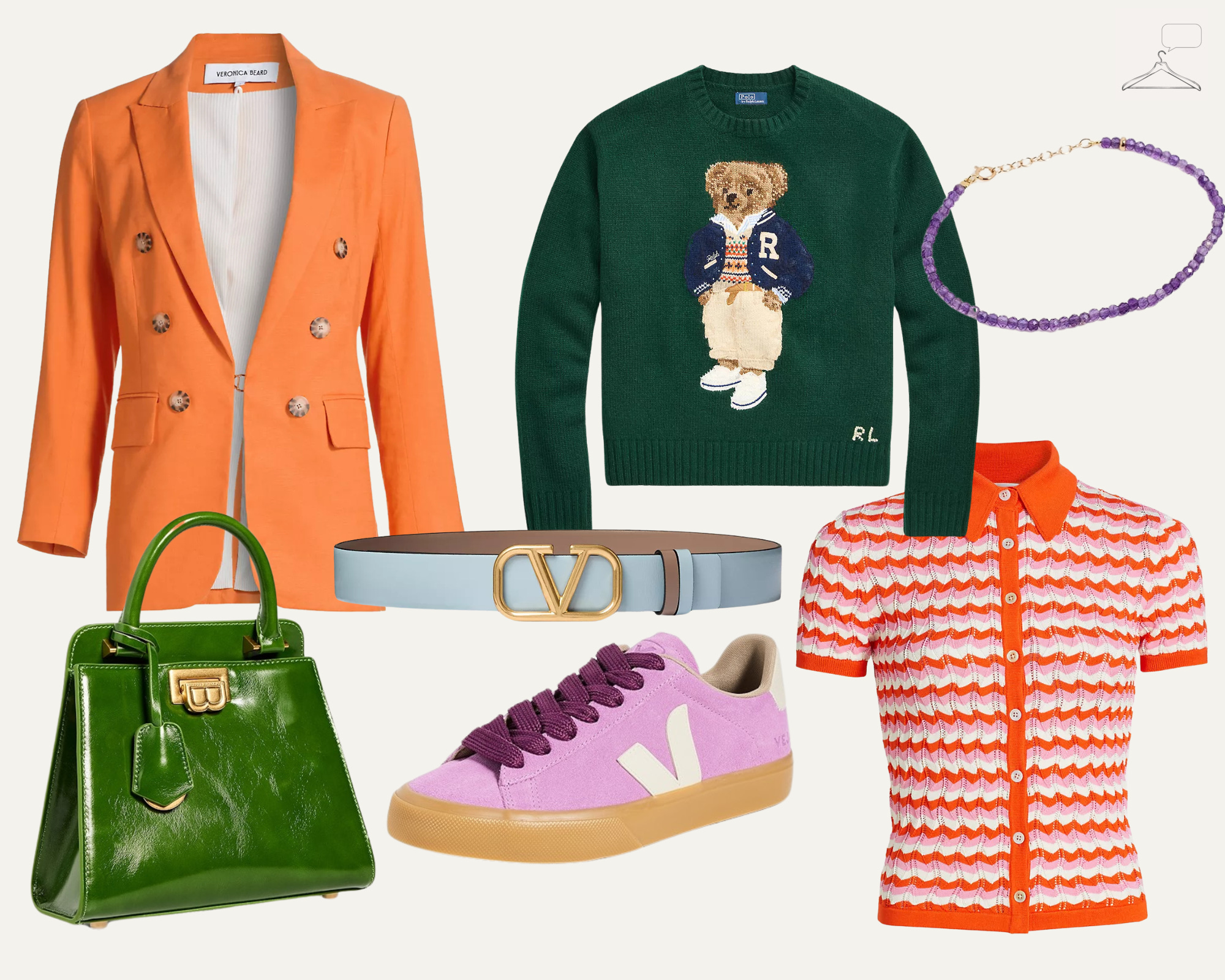 From left to right: Veronica Beard blazer, Brandon Blackwood bag, Valentino belt, Veja sneakers, Polo sweater, JIA JIA bracelet, Ronny Kobo striped knit Fun socks: People SLEEP on socks; they are a super underrated accessory to jazz up an outfit. Socks are also a great but subtle way to showcase things that interest you without having to make as big of a statement as wearing an emblazoned shirt for example.