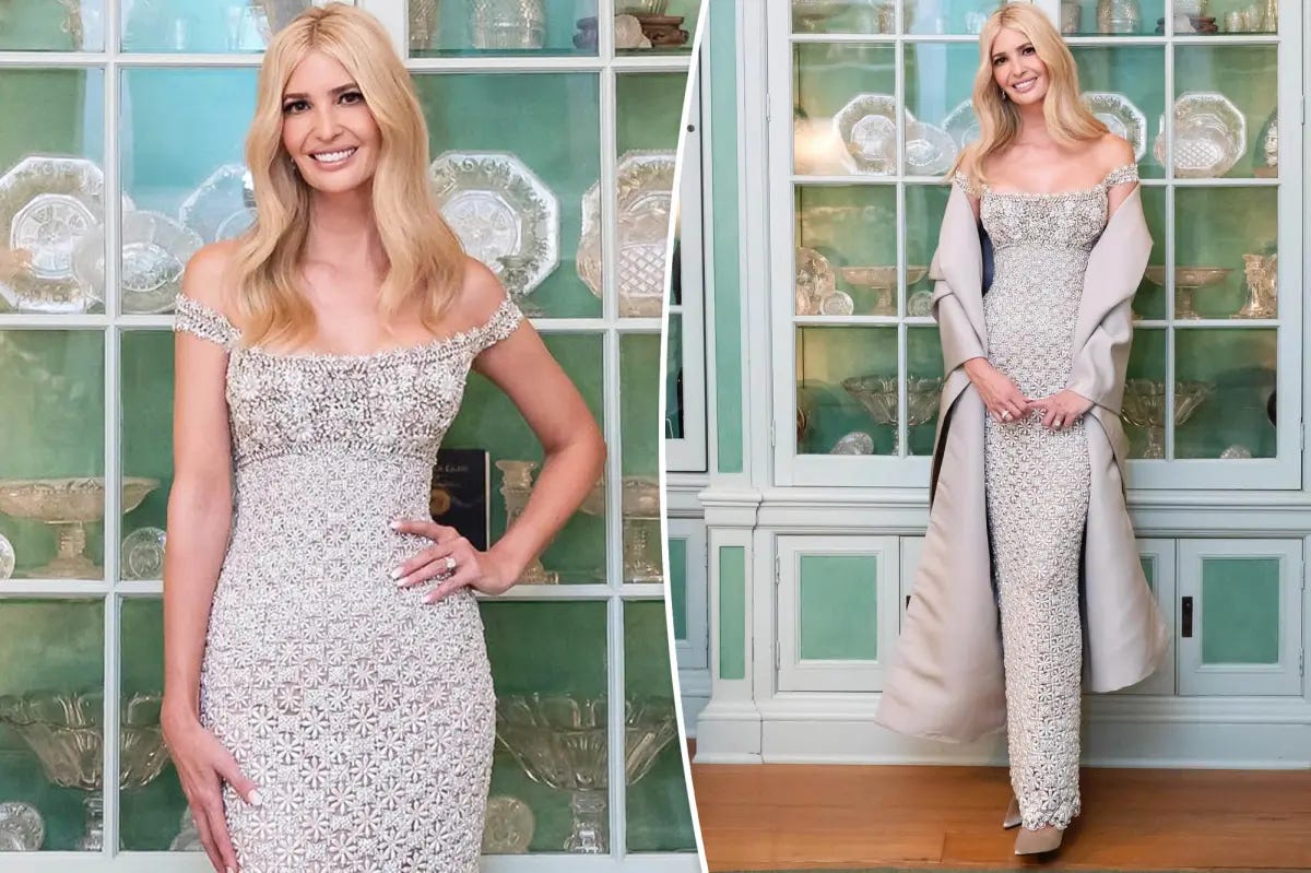 And because fashion is political (quite literally in this case, as LVMH CEO Bernard Arnault was silently in the building before being whisked away again for Paris Fashion Week), we the people wanted to see what statements people would be making via their clothing of choice. And while this was one of the more drab inaugurations I’ve been alive to witness (Ella Emhoff is a tough act to follow if you really like fashion), I walked away from the events of the day thinking about…..Ivanka.